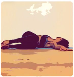Deep relaxation pose is more commonly referred to as Savasana. This asana is very important to a yoga practice. It’s typically used at the beginning or end of a yoga session. Though it appears to be an easy pose, it can be challenging to many as it is a Pose of surrender and letting go. Many have a tough time lying still with their thoughts, but this asana is quite calming.